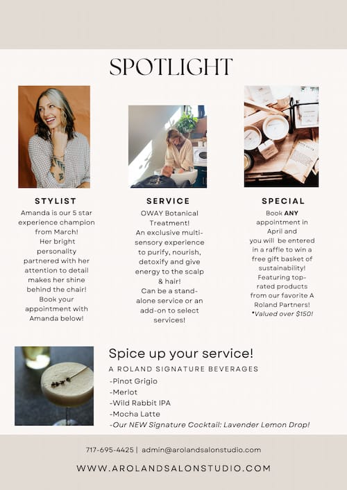At A Roland Salon, we frequently offer promotions and specials to both new and loyal clients! Before booking your next appointment, be sure to check our Current Specials page for any opportunities to save on your upcoming visit.